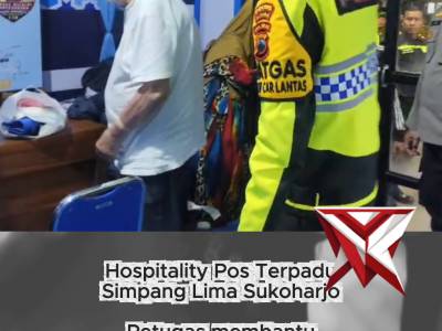 Hospitality Pos Terpadu Simpang Lima SukoharjoMar 21, 2026 07:45 - Berita - 2 viewsHospitality Pos Terpadu Simpang Lima Sukoharjo Petugas membantu pasangan lansia yang turun dari travel akibat kondisi kesehatan. Penanganan diberikan hingga kondisi membaik, dan dijemput keluarga dari Bantul. Wujud nyata pelayanan humanis untuk masyarakat... -