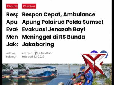 Aksi Cepat Polisi Penolong! Ditpolairud Polda Sumsel Evakuasi Warga Lewat Jalur AirApr 06, 2026 01:01 - Berita - 0 views**Deskripsi Video:** “Aksi Cepat Polisi Penolong! Ditpolairud Polda Sumsel Evakuasi Warga Lewat Jalur Air” menampilkan respon sigap dan kepedulian personel Ditpolairud Polda Sumatera Selatan dalam membantu masyarakat yang membutuhkan pertolongan darurat... -