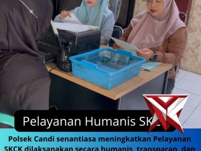 Pelayanan Humanis SkckMar 09, 2026 21:45 - Berita - 0 viewsPelayanan SKCK dilaksanakan secara humanis, transparan, dan bertanggung jawab, sehingga masyarakat merasa nyaman dan terbantu.?Dengan mengedepankan senyum, sapa, dan salam, Polsek Candi berupaya memberikan pelayanan terbaik sebagai bentuk pengabdian kepad... -