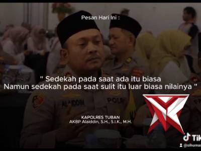 Indahnya berbagi di bulan suci.Mar 14, 2026 18:04 - Berita - 0 viewsHalo Sobat Polri ? Indahnya berbagi di bulan suci. . Kapolres Tuban, AKBP Alaiddin, S.H., S.I.K., M.H., bersama Ketua Bhayangkari Cabang Tuban melaksanakan buka puasa bersama anggota Polres Tuban dan memberikan santunan kepada anak yatim. Semoga kegiatan... -