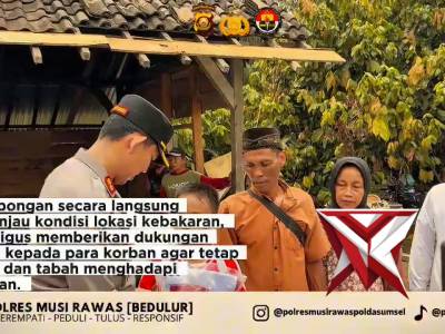 Kapolres Musi Rawas melaksanakan kunjungan ke lokasi korban kebakaran di Kecamatan Megang Sakti .Apr 03, 2026 01:14 - Berita - 0 viewsKapolres Musi Rawas melaksanakan kunjungan ke lokasi korban kebakaran di Kecamatan Megang Sakti, Kegiatan ini sebagai bentuk kepedulian dan empati kepada masyarakat yang terdampak musibah, sekaligus memastikan situasi kamtibmas tetap aman dan kondusif.... -