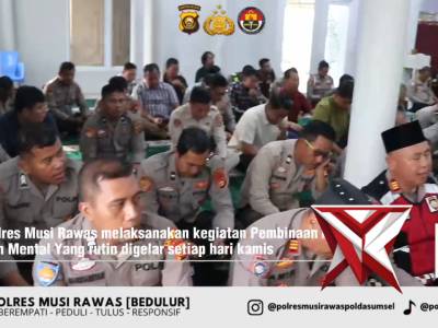 1. Selaraskan Program Kapolda Sumsel, Polres Musi Rawas Bentuk Personel Berakhlak Lewat Binrohtal RApr 02, 2026 19:09 - Berita - 0 viewsDalam rangka mendukung program Kapolda Sumatera Selatan, Irjen. Pol. Dr. H. Sandi Nugroho, Polres Musi Rawas secara rutin melaksanakan kegiatan pembinaan rohani dan mental (Binrohtal) bagi seluruh personel. Kegiatan ini menjadi salah satu upaya penting da... -