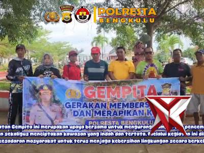 Polsek KSKP melaksanakan kegiatan Gerakan Membersihkan dan Merapikan Kota (Gempita) di Taman MangroApr 03, 2026 07:09 - Berita - 0 viewsPolsek KSKP melaksanakan kegiatan Gerakan Membersihkan dan Merapikan Kota (Gempita) di Taman Mangrove Albarokah 2 RT 09 RW 02 Kelurahan Sumber Jaya, Kecamatan Kampung Melayu, Kota Bengkulu mulai pukul 07.00 WIB hingga selesai, Selasa (31/3/2026). Kegi... -