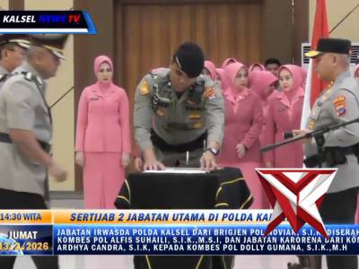 Serah Terima Jabatan (Sertijab) Dua Pejabat Utama Polda Kalsel - PoliceTubeFeb 17, 2026 06:58 - Berita - 40 viewsKepolisian Daerah Kalimantan Selatan (Polda Kalsel) resmi melaksanakan serah terima jabatan (sertijab) dua pejabat utama dalam upacara yang dipimpin langsung Kapolda Kalsel Irjen Pol Rosyanto Yudha Hermawan, S.I.K., S.H., M.H. di Auditorium Polda Kalsel,...