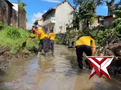 Anggota Polsek Lawang Laksanakan Gotong royong di kalibendo Utara Pols...