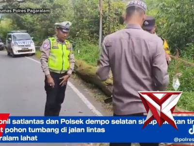 Personil sat lantas dan Polsek dempo selatan sigap lakukan tindakan akibat pohon tumbang dijalan - P...Apr 02, 2026 08:29 - Berita - 3 viewsPersonil sat lantas dan Polsek dempo selatan sigap lakukan tindakan akibat pohon tumbang dijalan lintas