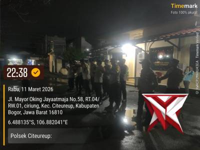 Ikuti Apel Zona 1 di Polsek Citeureup dilanjutkan Gelar Patroli dan KRYD oleh Piket Fungsi - PoliceT...Mar 13, 2026 07:37 - Berita - 2 viewsPolsekCiteureup_PolresBogor_PoldaJabar ?Rabu, tanggal 11 Maret 2026, dimulai Jam 08.00 Wib Personil Polsek Citeureup telah melaksanakan Pelayanan Publik dan jam 22.00 Wib ikuti Apel Gabungan Zona 1 di Polsek Citeureup dipimpin oleh Ipda Jajang Jatnika ?... -