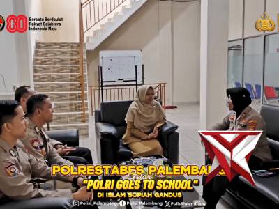 Polrestabes Palembang Gelar "Polri Goes to School" di Islam Sopiah Gandus: Stop Tawuran, Balapan Lia...Mar 27, 2026 16:42 - Berita - 2 viewsDalam upaya menanamkan kesadaran hukum sejak dini, Polrestabes Palembang melalui Sat Binmas menggelar kegiatan "Polri Goes to School" dengan tema Stop Tawuran, Balapan Liar, dan Bullying di Lapangan SD/SMP/SMA Islam Sopiah, Kelurahan Gandus, Kota Palemban... -