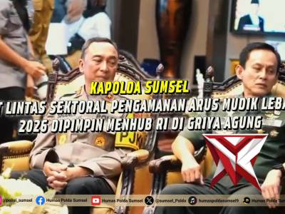 Kapolda Sumsel Tegaskan Kesiapan Pengamanan Arus Mudik Lebaran 2026Mar 02, 2026 20:46 - Berita - 3 viewsKapolda Sumsel Tegaskan Kesiapan Pengamanan Arus Mudik Lebaran 2026 Palembang - Polda Sumsel menegaskan kesiapan penuh dalam mengamankan arus mudik dan balik Idul Fitri 1447 H/2026 M. Komitmen tersebut ditegaskan langsung oleh Kapolda Sumsel Irjen Pol. D... -