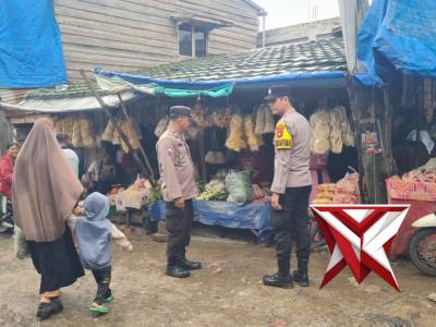 Kanit Binmas dan Bhabinkamtibmas Polsek Bayung Lencir melaksanakan giat Patroli Jalan Kaki memberikan imbauan kamtibmas yang kondusif kepada masyarakat