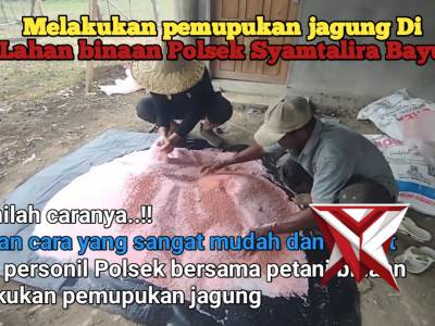 personil Polsek sy bayu melakukan pemupukan jagung dgn cara yang mudah besama kelompok tani binaanMar 25, 2026 19:23 - Berita - 1 viewsPersonel Polsek Syamtalira Bayu bersama petani binaan melaksanakan kegiatan pemupukan tanaman jagung di lahan pertanian setempat. Kegiatan ini bertujuan untuk membantu para petani meningkatkan hasil panen dengan cara yang mudah, efisien, dan hemat biaya.... -