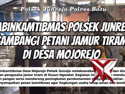 Bhabinkamtibmas Polsek Junrejo sambangi petani jamur tiram di Desa MojorejoApr 06, 2026 04:15 - Berita - 0 viewsBhabinkamtibmas Desa Mojorejo Polsek Junrejo melaksanakan sambang dan dialogis dengan pengusaha jamur tiram di Dusun Ngandat. Kegiatan ini bertujuan mendukung ketahanan pangan serta mendorong peningkatan perekonomian masyarakat sekitar, sekaligus menyampa... -