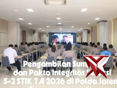 Biro SDM Polda Jateng Melaksanakan Pengambilan Sumpah dan Fakta Integritas Seleksi S2 STIK TA 2026 -...Mar 02, 2026 20:57 - Berita - 5 viewsBiro SDM Polda Jateng Melaksanakan Pengambilan Sumpah dan Fakta Integritas Seleksi S2 STIK TA 2026 Polda Jateng -