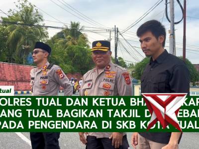 KAPOLRES TUAL DAN KETUA BHAYANGKARI CABANG TUAL BAGIKAN TAKJIL DAN SEBAKO KEPADA PENGENDARA DI SKB K...Mar 04, 2026 16:31 - Berita - 4 viewsKAPOLRES TUAL DAN KETUA BHAYANGKARI CABANG TUAL BAGIKAN TAKJIL DAN SEBAKO KEPADA PENGENDARA DI SKB KOTA TUAL TUAL, 3 MARET 2026 – Kapolres Tual AKBP Whansi Des Asmoro, S.H., S.I.K., dan Ketua Bhayangkari Cabang Tual, Wakapolres Tual dan Para Pju Polres... -
