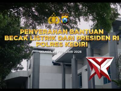 Kapolres Kediri dan Dandim 0809/Kediri Kompak Ikuti Penyerahan 200 Becak Listrik Bantuan Presiden RI...Feb 25, 2026 17:16 - Berita - 8 viewsSebanyak 200 tukang becak di Kabupaten Kediri menerima bantuan becak listrik dari Presiden RI Jenderal TNI (Purn.) H. Prabowo Subianto D., Selasa (24/2/2026). Bantuan tersebut diserahkan langsung oleh Direktur Perencanaan dan Pengembangan Usaha Yayasan... -