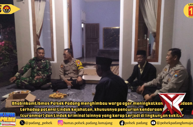 Cegah 4C, Polsek Padang Gencar Patroli Siang Beri Himbauan Kamtibmas ke WargaNov 16, 2025 09:15 - Berita - 57 viewsLumajang – Dalam rangka menjaga situasi kamtibmas tetap aman dan kondusif, Anggota Polsek Padang melaksanakan patroli siang hari menyasar sejumlah obyek vital yang ada di wilayah hukumnya, Selasa (19/9/2025). Patroli tersebut sekaligus menjadi ajang bagi... -