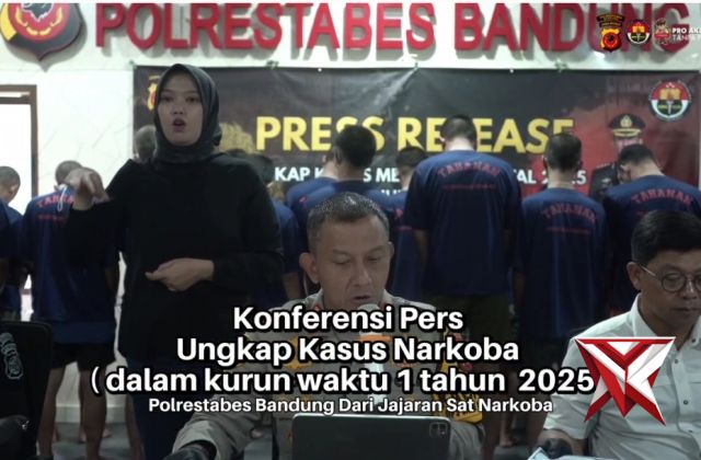 Konferensi Pers Ungkap Kasus Narkoba (Dalam Waktu Kurun Waktu 1 Tahun 2025)Dec 26, 2025 15:09 - Berita - 32 viewsPolrestabes Bandung – Kapolrestabes Bandung Kombes Pol. Dr. Budi Sartono, S.I.K., M.Si., M.Han melalui Kasat Reserse Narkoba AKBP Agah Sonjaya, S.H., M.H. menyampaikan bahwa Polrestabes Bandung berhasil mengungkap 38 kasus peredaran narkoba dan obat-obata... -