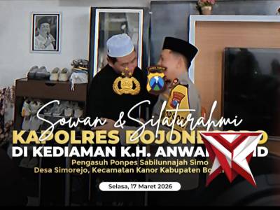 SOWAN & SILATURAHMI KAPOLRES BOJONEGORO DI ?EDIAMA? ?.?. ?NWAR ZAHIDMar 19, 2026 09:58 - Berita - 2 viewsKapolres Bojonegoro AKBP Afrian Satya Permadi, S.H., S.I.K., M.I.K. melaksanakan silaturahmi ke kediaman KH Anwar Zahid di Kabupaten Bojonegoro, sebagai bentuk mempererat sinergitas antara Polri dengan tokoh agama dalam menjaga situasi kamtibmas, Selasa (... -