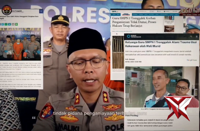 Sempat Heboh di Media Sosial, Polres Trenggalek Tetapkan Tersangka Penganiayaan GuruNov 11, 2025 08:25 - Berita - 58 viewsSempat Heboh di Media Sosial, Polres Trenggalek Tetapkan Tersangka Penganiayaan Guru Kepolisian Resor Trenggalek menetapkan satu orang tersangka dalam peristiwa penganiayaan terhadap salah seorang guru SMP di Kabupaten Trenggalek. AK, (27 tahun) warga de... -