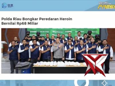 Polda Riau Bongkar Peredaran Heroin Bernilai Rp 68 MiliarMar 08, 2026 15:32 - Berita - 4 viewsDirektorat Reserse Narkoba Polda Riau berhasil mengungkap peredaran narkotika jenis heroin di Kabupaten Bengkalis dengan menyita barang bukti sebanyak 22,7 kilogram heroin senilai kurang lebih Rp 68 miliar. Dalam operasi tertutup dengan metode undercover...