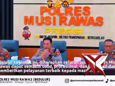 Gelar Opsnal Polres Mura dalam rangka mendukung kebijakan Kapolda sumsel IJP DR. Sandi NugrohoApr 02, 2026 19:22 - Berita - 0 views*Deskripsi* ? Gelar Opsnal Bulanan Polres Musi Rawas Kegiatan Gelar Operasional (Opsnal) bulanan Polres Musi Rawas dilaksanakan pada pukul 09.00 WIB bertempat di Ruang PG Polres Musi Rawas. Kegiatan ini dipimpin langsung oleh Kapolres Musi Rawas dan did... -