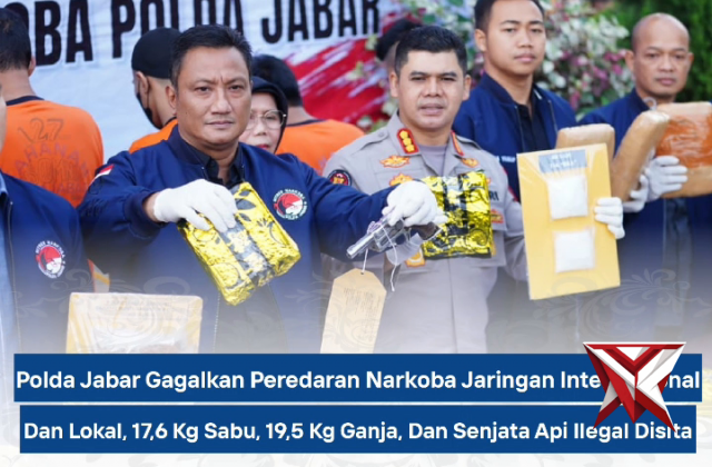 Polda Jabar gagalkan jaringan narkoba internasionalNov 16, 2025 09:25 - Berita - 43 viewsPOLDA JABAR GAGALKAN PEREDARAN NARKOBA JARINGAN INTERNASIONAL DAN LOKAL, 17,6 KG SABU, 19,5 KG GANJA, DAN SENJATA API ILEGAL DISITA Polda Jawa Barat melalui Direktorat Reserse Narkoba berhasil menggagalkan peredaran gelap narkotika jaringan internasional... -
