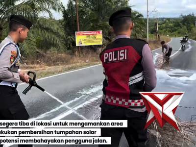 Quick Response Ditsamapta Polda Kaltara Bersihkan Tumpahan Solar di Jl. Jelarai KM.6 Bulungan - Poli...Feb 16, 2026 22:17 - Berita - 17 viewsQuick Response Ditsamapta Polda Kalimantan Utara dengan sigap melakukan pembersihan tumpahan solar di Jalan Jelara KM 6, Tanjung Selor. Kegiatan ini dilakukan sebagai langkah cepat untuk mencegah terjadinya kecelakaan lalu lintas akibat jalan licin serta...