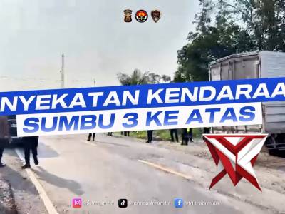 Penyekatan Kendaraan Sumbu 3 Keatas di JalintimMar 25, 2026 11:53 - Berita - 2 viewsPenyekatan Kendaraan Sumbu 3 Keatas di Jalintim,sebagai upaya menjaga kelancaran arus lalu lintas dalam oprasi ketupat musi 2026 Bila ada permasalahan dan butuh bantuan Polisi silahkan hubungi : Call Center : 110 (Bebas Pulsa) "KAMI SIAP MELAYANI 24 JA... -