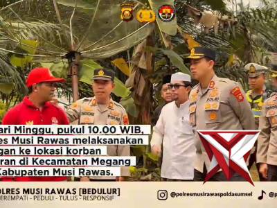 Kapolres Musi Rawas melaksanakan kunjungan ke lokasi korban kebakaran di Kecamatan Megang Sakti, KabMar 30, 2026 23:39 - Berita - 2 viewsKapolres Musi Rawas melaksanakan kunjungan ke lokasi korban kebakaran di Kecamatan Megang Sakti, Kabupaten Musi Rawas Kegiatan ini sebagai bentuk kepedulian dan empati kepada masyarakat yang terdampak musibah, sekaligus memastikan situasi kamtibmas tetap...