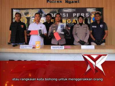 KONTEN 2 : KONFERENSI PERS PERBUATAN CURANG GOPAYMar 03, 2026 17:19 - Berita - 4 viewsPolres Ngawi di bawah kepemimpinan Kapolres Prayoga Angga Widyatama, S.I.K., M.Si., berhasil mengungkap kasus perbuatan curang dengan modus mengaku sebagai sales mitra aplikasi Gopay dan Dana. Satreskrim Polres Ngawi bergerak cepat hingga berhasil menang... -
