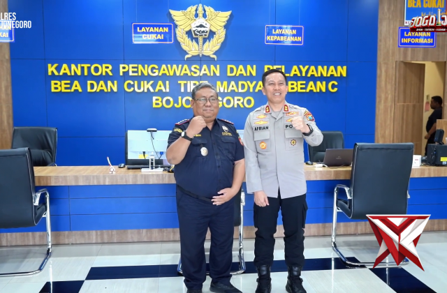 Kunjungan Kerja Di Bea Cukai BojonegoroNov 11, 2025 09:05 - Berita - 45 viewsKapolres Bojonegoro, AKBP Afrian Satya Permadi, S.H., S.I.K., M.I.K., melaksanakan kunjungan kerja ke Kantor Pengawasan dan Pelayanan Bea dan Cukai Bojonegoro Senin (15/9/2025). AKBP Afrian menegaskan pentingnya kolaborasi antara aparat kepolisian dan Be... -