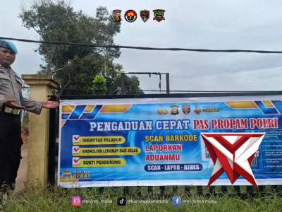 Pemasangan soanduk dan sosialisasi pengadua. Propam polri Polres MubaApr 04, 2026 23:20 - Berita - 2 viewsPemasangan soanduk dan sosialisasi pengadua. Propam polri Polres Muba -