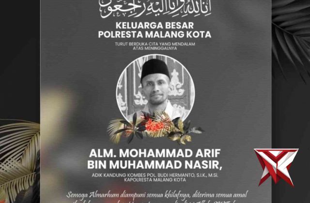 Polresta Malang Kota Berduka: Adik Kapolresta Kombes Pol Budi Hermanto Tutup UsiaAug 23, 2024 13:50 - Berita - 308 viewsMalang - keluarga besar Kepolisian Resort Kota Malang Kota tengah berduka atas berpulangnga Mohammad Arif Bin Muhammad Nasir, adik kandung Kombespol Budi Hermanto, S.I.K., M.Si., Kapolresta Malang Kota. Mohammad Arif tutup usia pada 18 juli... -