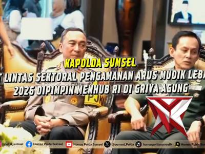 Kapolda Sumsel Tegaskan Kesiapan Pengamanan Arus Mudik Lebaran 2026 Palembang - Polda Sumsel menega...Feb 26, 2026 04:19 - Berita - 8 viewsKapolda Sumsel Tegaskan Kesiapan Pengamanan Arus Mudik Lebaran 2026 Palembang - Polda Sumsel menegaskan kesiapan penuh dalam mengamankan arus mudik dan balik Idul Fitri 1447 H/2026 M. Komitmen tersebut ditegaskan langsung oleh Kapolda Sumsel Irjen Pol. D... -
