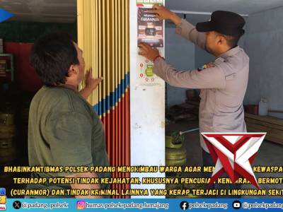 Bhabinkamtibmas Polsek Padang menghimbau warga agar meningkatkan kewaspadaan - PoliceTubeFeb 28, 2026 00:03 - Berita - 5 viewsBhabinkamtibmas Polsek Padang menghimbau warga agar meningkatkan kewaspadaan terhadap potensi tindak kejahatan, khususnya pencurian kendaraan bermotor (curanmor) dan tindak kriminal lainnya yang kerap terjadi di lingkungan sekitar -