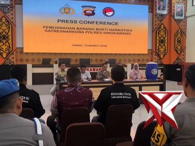 Polres Singkawang Musnahkan 488,05 Gram Sabu, Tegas Perangi NarkotikaMar 19, 2026 14:38 - Berita - 3 viewsPolres Singkawang melalui Satresnarkoba memusnahkan 488,05 gram sabu hasil pengungkapan kasus narkotika, Jumat (13/3/2026) di Mapolres Singkawang. Kegiatan dipimpin Wakapolres Riko Syafutra dan disaksikan oleh unsur Kejaksaan, Pengadilan, BNN, Dinas Kese... -
