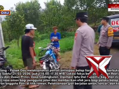 NGABUBURIT NYAMAN, JALANAN AMAN! ???????Feb 23, 2026 00:43 - Berita - 10 viewsNGABUBURIT NYAMAN, JALANAN AMAN! ??????? Sabtu sore (21/02), personel Polsek Dau yang dipimpin Iptu Dwi Sujianto melaksanakan patroli antisipasi balap liar di wilayah hukum Polsek Dau. ? Kami hadir di titik rawan: ? Depan Rest Area Petungsewu ? Dusun Pr... -
