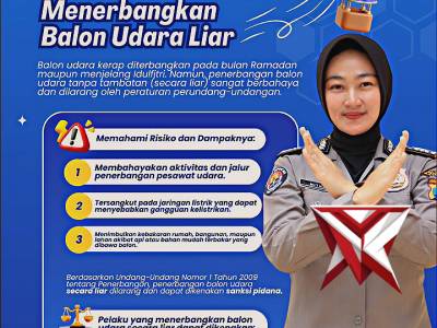 Himbauan dilarang menerbangkan Balon udara Liar - PoliceTubeMar 11, 2026 02:38 - Berita - 6 viewsHimbauan dilarang menerbangkan Balon udara Liar -