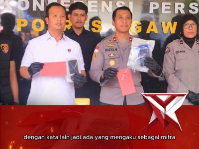 KONTEN 2 : KONFERENSI PERS PERBUATAN CURANG GOPAYMar 03, 2026 17:19 - Berita - 4 viewsPolres Ngawi di bawah kepemimpinan Kapolres Prayoga Angga Widyatama, S.I.K., M.Si., berhasil mengungkap kasus perbuatan curang dengan modus mengaku sebagai sales mitra aplikasi Gopay dan Dana. Satreskrim Polres Ngawi bergerak cepat hingga berhasil menang... -