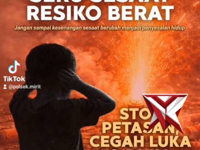 Stop main petasan, cegah luka dan duka..Petasan seru sesaat resiko berat - PoliceTubeFeb 22, 2026 12:11 - Berita - 9 viewsSobat Polri...... Main Petasan Seru Sesaat, Resiko Berat Jangan sampai kesenangan sesaat berubah menjadi penyesalan hidup Stop Petasan!!, Cegah Luka & Duka Call Center Polri 110 -
