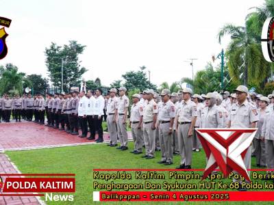 Kapolda kaltim Pimpin Apel Pagi, Berikan Penghargaan dan Syukuran HUT ke 68 Polda kaltim - PoliceTub...Feb 23, 2026 03:18 - Berita - 10 viewsKapolda Kalimantan Timur Irjen Pol. Endar Priantoro, S.H., S.I.K., C.F.E., M.H., memimpin langsung Apel Pagi yang dirangkaikan dengan pemberian penghargaan kepada personel berprestasi dan kegiatan syukuran Hari Ulang Tahun (HUT) ke-68 Polda Kaltim. Kegiat... -