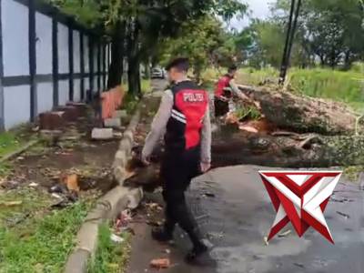 EVAKUASI POHON TUMBANGMar 12, 2026 00:23 - Berita - 6 viewsPolres Ngawi di bawah kepemimpinan AKBP Prayoga Angga Widyatama, S.I.K., M.Si., melalui personel Polsek Paron bergerak cepat mengevakuasi pohon yang tumbang dan melintang di badan jalan tepatnya di Jalan Raya Teguhan, Kecamatan Paron, Kabupaten Ngawi. Po... -