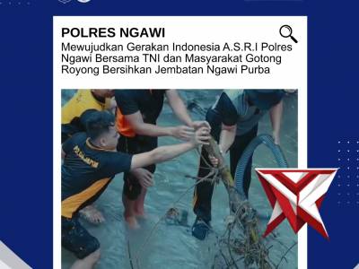 POLRES NGAWI MELAKSANAKAN KEGIATAN KERJA BAKTI DAN PEMBERSIHAN JEMBATAN NGAWI PURBA DS. / KEC. NGAWIApr 26, 2026 01:49 - Berita - 3 viewsPolres Ngawi di bawah kepemimpinan Kapolres Ngawi AKBP Prayoga Angga Widyatama, S.I.K., M.Si., melaksanakan melaksanakan kegiatan kerja bakti dan pembersihan Jembatan Ngawi Purba di Dsn. Blandongan, Ds./Kec. Ngawi Purba, Kab. Ngawi dalam rangka mendukung... -