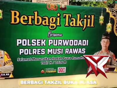 Polsek Purwodadi melakukan pembagian takzil buka puasa di jalan lintas PurwodadiFeb 25, 2026 03:00 - Berita - 6 viewsPolres Musi Rawas - Polda Sumatera Selatan, Selasa, 24 Februari 2026, Polsek Purwodadi melakukan pembagian takzil buka puasa di jalan lintas Purwodadi, dengan penerima adalah pengendara yang melalui jalan tersebut, dan kegiatan ini merupakan bentuk upaya... -