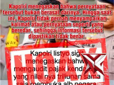 Klarifikasi Resmi Kapolri, Jenderal Polisi Dr. Listyo Sigit Prabowo Terkait Pernyataan Yang BeredarMar 02, 2026 02:06 - Berita - 5 viewsKlarifikasi Resmi Kapolri, Jenderal Polisi Dr. Listyo Sigit Prabowo Terkait Pernyataan Yang Beredar Klarifikasi resmi dari Kapolri Jenderal Polisi Dr. Listyo Sigit Prabowo: Pernyataan yang beredar di publik & media sosial bukan berasal dari beliau da... -