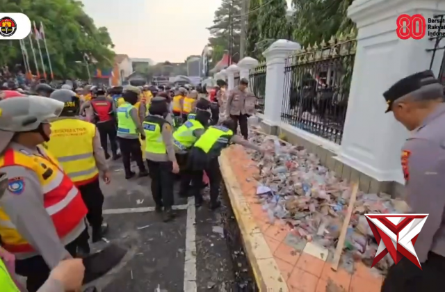 Polri Gelar Aksi Bersih-Bersih Pasca Unjuk Rasa di PatiNov 10, 2025 03:05 - Berita - 48 viewsUsai mengawal jalannya kegiatan unjuk rasa di halaman Kantor Bupati Pati, Jawa Tengah. Personel Polri langsung menggelar aksi bersih-bersih untuk memastikan area tetap bersih, aman, dan nyaman bagi masyarakat. Sampah dan material bekas aksi segera dibersi...