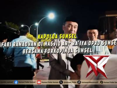 Sinergi Religius di DPRD Sumsel, Kapolda Sumsel Dorong Kamtibmas Kondusif - PoliceTubeFeb 22, 2026 13:15 - Berita - 6 viewsSinergi Religius di DPRD Sumsel, Kapolda Sumsel Dorong Kamtibmas Kondusif Palembang - Kapolda Sumsel Irjen Pol Sandi Nugroho menghadiri kegiatan Pengajian Ramadhan 1447 H bersama Forum Koordinasi Pimpinan Daerah (Forkopimda) Provinsi Sumatera Selatan. Ke... -