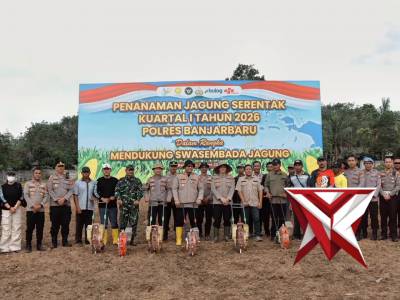 Penanaman Jagung Serentak Kuartal I Tahun 2026 Polres Banjarbaru.Mar 09, 2026 01:53 - Berita - 3 viewsPenanaman Jagung Serentak Kuartal I Tahun 2026 Polres Banjarbaru. swasembadapangan ketahananpangan polridukungketahananpangan Poldakalsel polresbanjarbaru humaspolresbanjarbaru
