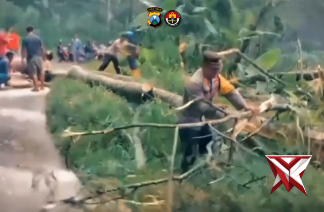 EVAKUASI POHON TUMBANG POLRES PONOROGONov 11, 2025 08:05 - Berita - 53 viewsPolsek Ngrayun Polres Ponorogo melaksanakan kegiatan tanggap bencana sebagai bentuk kepedulian terhadap masyarakat yang terdampak bencana alam di wilayah Kecamatan Ngrayun, Kabupaten Ponorogo pada Minggu, 10 November 2025. -