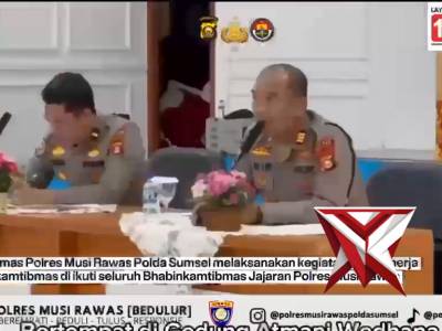 Tinjuk arahan Kapolda Sumsel- Satbinmas Polres Musi Rawas gelar Anev Kinerja Bulanan BhabinkamtibmasApr 10, 2026 06:49 - Berita - 0 viewsDeskripsi : Rabu, 08 April 2026. Polres Musi Rawas Gelar Anev Kinerja Bhabinkamtibmas April 2026 Sat Binmas Polres Musi Rawas melaksanakan kegiatan Anev Kinerja Bhabinkamtibmas jajaran sebagai bagian dari Program Kerja Kapolres Musi Rawas. AKBP Agung Ad... -